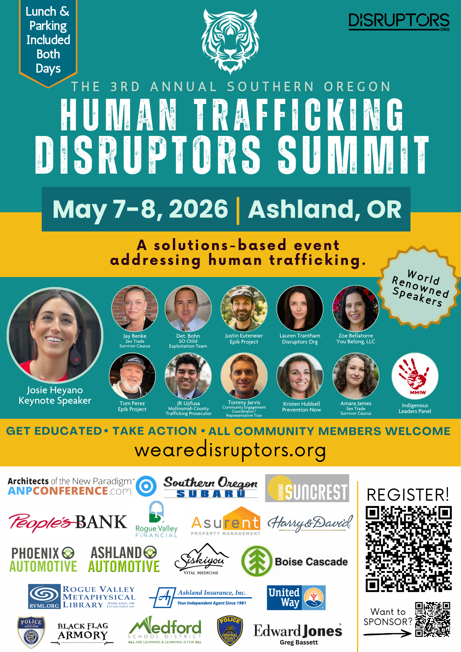 The Disruptors Summit is Southern Oregon’s premier gathering of leaders, advocates, survivors, service providers, educators, law enforcement, and engaged citizens who are committed to ending human trafficking in all its forms.